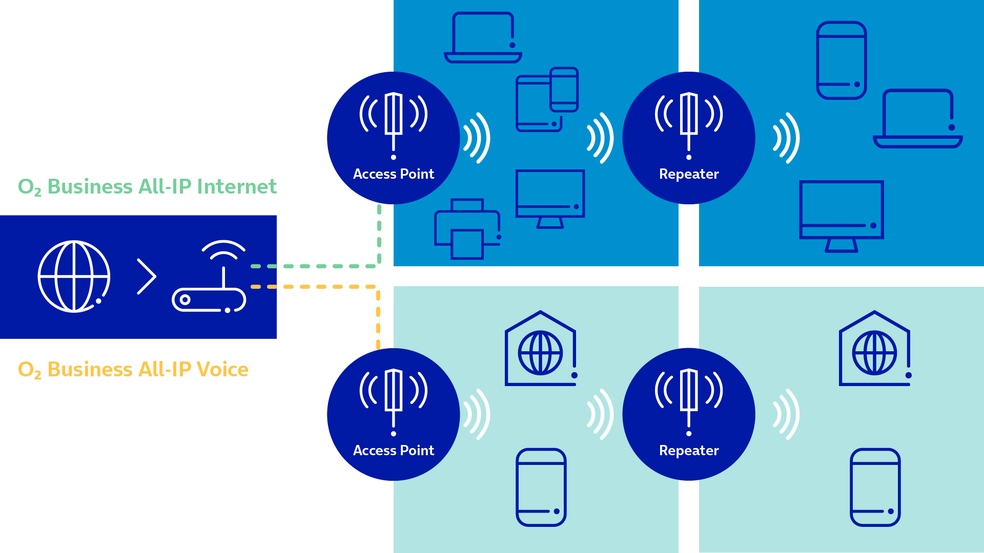 Ganz gleich, ob Ihre Mitarbeiter oder Ihre Besucher die O2 Business All-IP Services in Ihren Geschäftsräumen nutzen wollen: Für all dies haben wir die passende WLAN-Lösung.